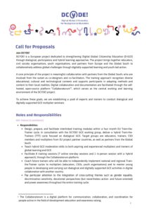 DCYDE! ist ein europäisches Kooperationsprojekt zur Stärkung von digitaler Global Citizenship Education (GCE). Gemeinsam mit Bildungsakteur:innen, zivilgesellschaftlichen Organisationen, Jugendorganisationen sowie internationalen Partner:innen entwickeln wir partizipative und hybride Lernformate zu global verantwortungsvollem Handeln. Ein zentrales Prinzip von DCYDE! ist die gleichberechtigte Zusammenarbeit mit Partner:innen aus dem Globalen Süden.