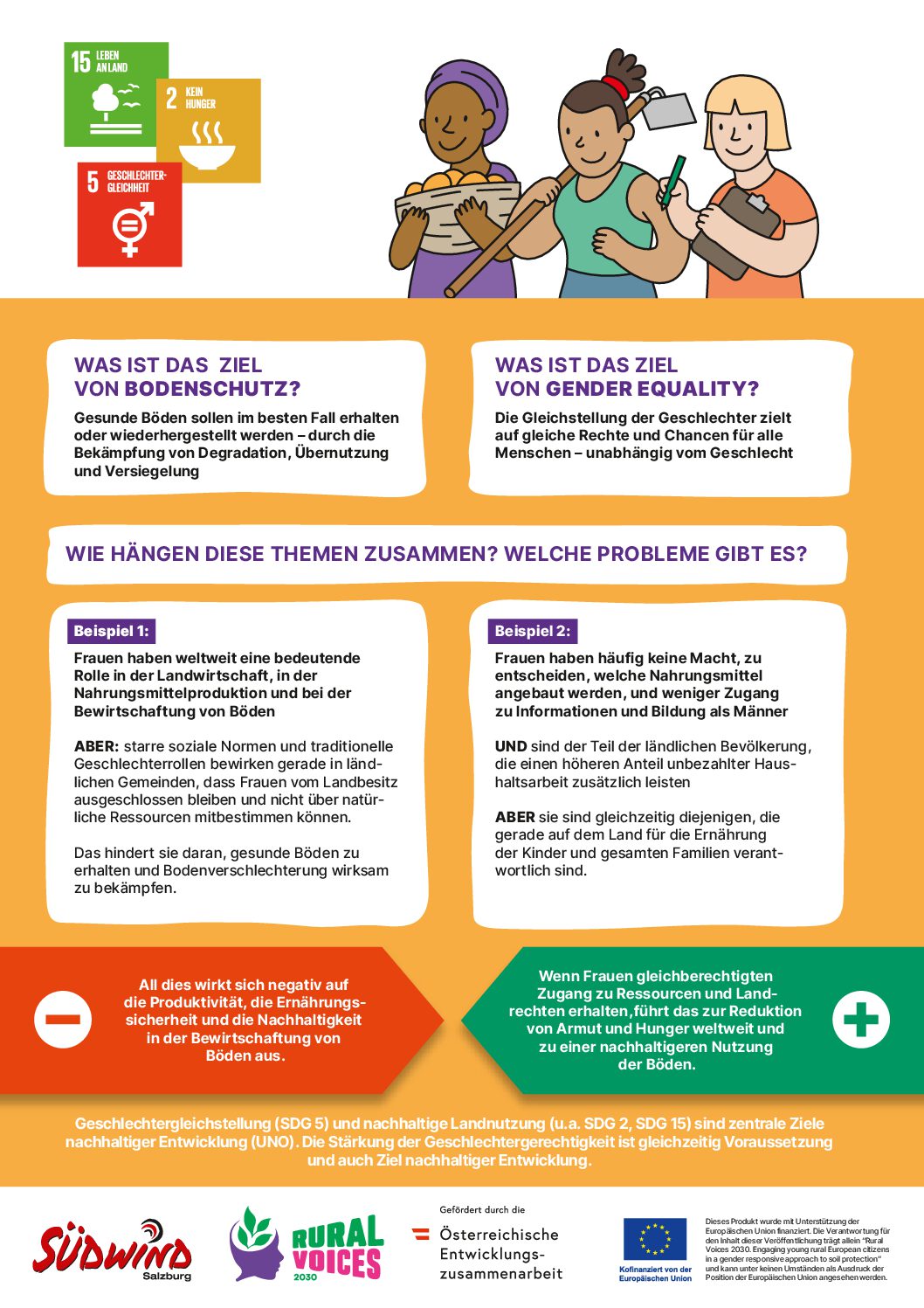 Bodenschutz und Gendergerechtigkeit stehen eng miteinander in Verbindung. Erosion, Versiegelung, Verschmutzung durch Chemikalien und der Verlust von Fruchtbarkeit betreffen Böden weltweit. Das gefährdet die Nahrungsmittelproduktion und die Umwelt. Frauen werden seltener in Entscheidungen zu Bodenschutz einbezogen, besitzen weniger Land und können seltener in nachhaltigere Landwirtschaft investieren.
