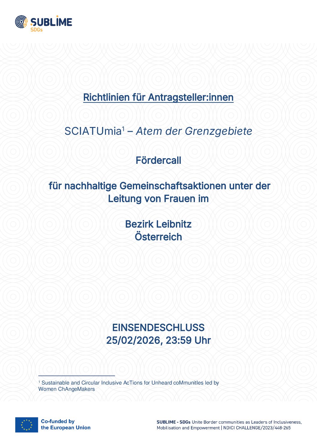 Ihr seid ein frauengeführter Verein und wollt euch für mehr Nachhaltigkeit und Geschlechtergerechtigkeit in eurem Bezirk engagieren? Dann bringt eure Ideen ein und bewerbt euch bei SCIATUmia, einem Förderaufruf im Rahmen des EU-Projekts Sublime SDGs.
