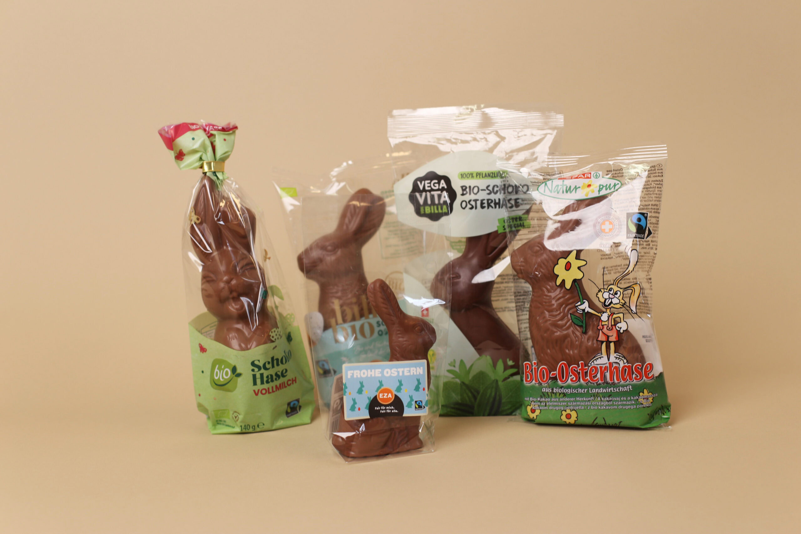 Fünf Testsieger, die sich bereits in den letzten Jahren als Vorreiter für soziale und ökologische Standards etabliert haben, gewinnen in diesem Jahr erneut das Rennen. Der “EZA-Schokohase” aus den Weltläden, der “Billa Bio Schokohase”, der vegane “Billa Vegavita Bio Schoko Osterhase”, der “Spar Natur Pur Bio-Osterhase” und der “BIO Osterhase Fairtrade” von Hofer. Sie alle tragen sowohl das FAIRTRADE als auch das EU-Biosiegel. Im Ampelsystem des Osterhasen-Checks bekommen sie deshalb eine doppelt grüne Bewertung.