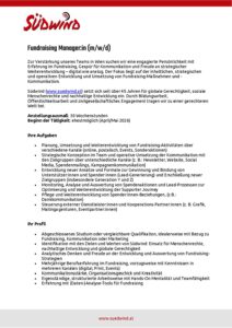 - Mehrjährige Berufserfahrung im Fundraising, vorzugsweise mit Kenntnissen in mehreren Kanälen (digital, Print, Events)