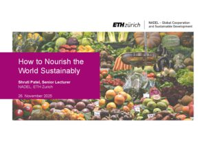 Shruti Patel is a senior lecturer at ETH NADEL where she teaches on the topics of food and nutrition security, storytelling, and behaviour change. She has a background in agricultural economics and development studies. She worked for over 20 years on international development cooperation projects in Bangladesh, Romania, Tanzania, and Kenya where she comes from.